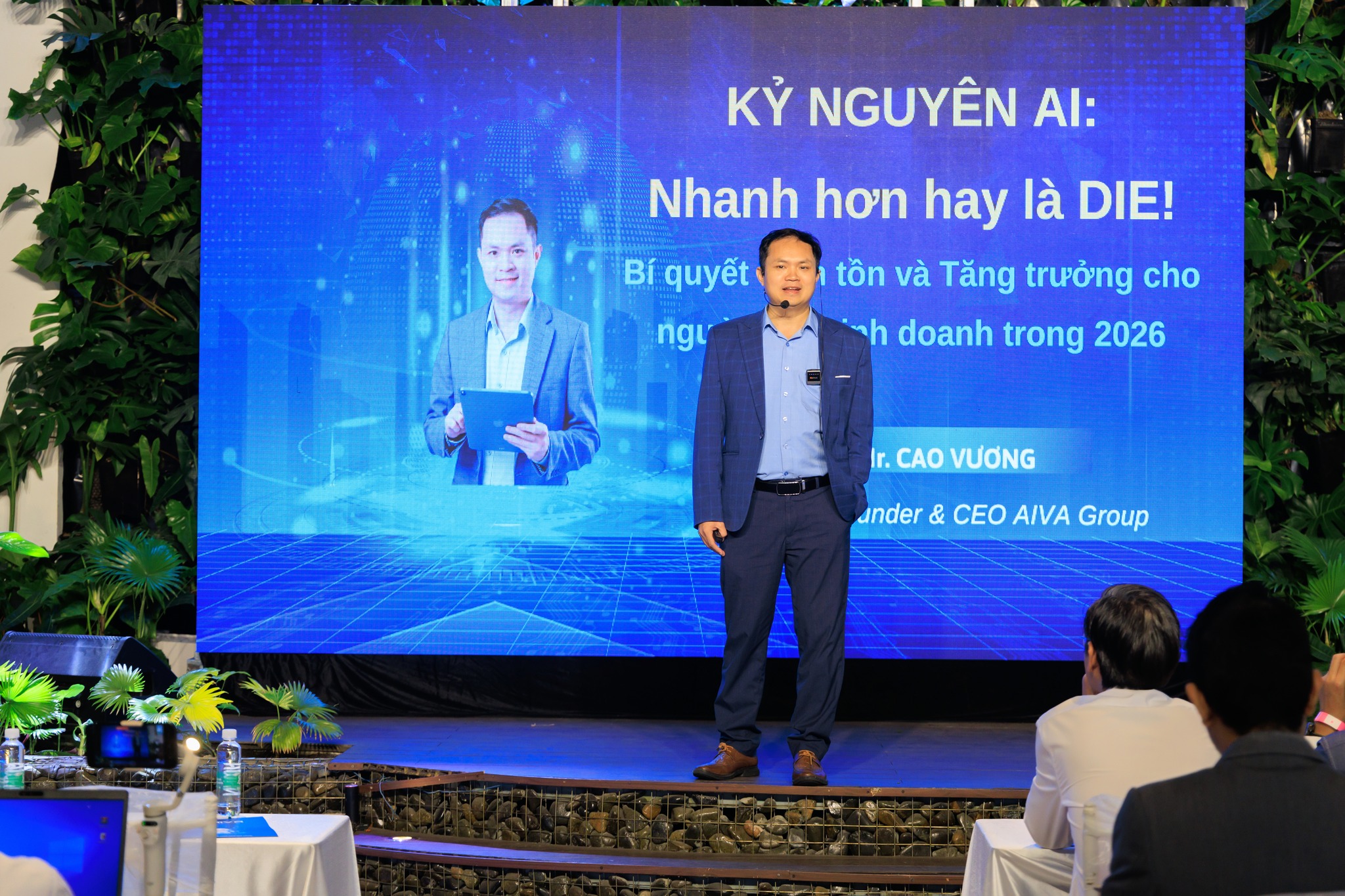 Phiên chia sẻ chuyên sâu 2 giờ của ông Cao Vương - Chủ tịch AIVA Group, được đánh giá là điểm nhấn thực chiến nhất của AI BUSINESS SUMMIT 2026 – TP.HCM.