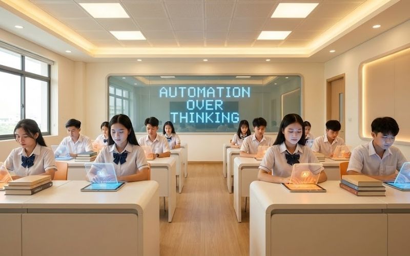Một biểu hiện rõ ràng của nguy cơ lạm dụng AI trong giáo dục là việc người học dần quen với việc tìm câu trả lời từ AI thay vì tự suy nghĩ. Khi mọi thắc mắc đều có thể được giải đáp tức thì, học sinh có xu hướng:
