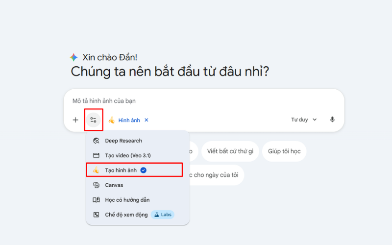 Bước 2: Chọn tính năng Tạo hình ảnh