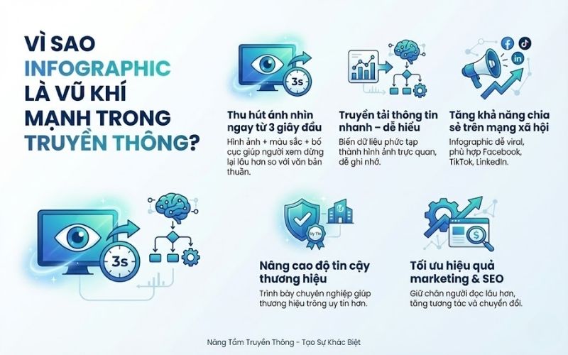 Trên các nền tảng như Facebook, Instagram hay TikTok, bài đăng kèm infographic thường thu hút lượt xem và tương tác tốt hơn so với bài chỉ có chữ.