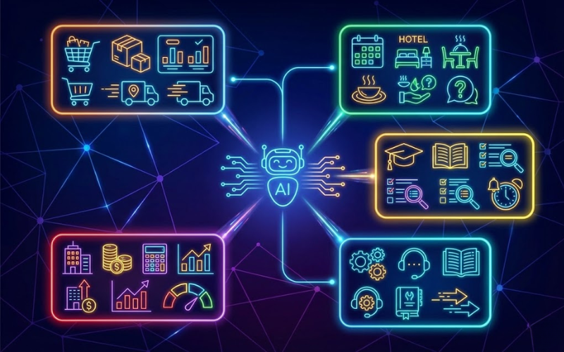 Mọi lĩnh vực có sự tương tác giữa người với người đều có dư địa để tích hợp trí tuệ nhân tạo. Tuy nhiên, dựa trên dữ liệu thị trường năm 2026, có 4 nhóm ngành nhận được giá trị chuyển đổi cao nhất: