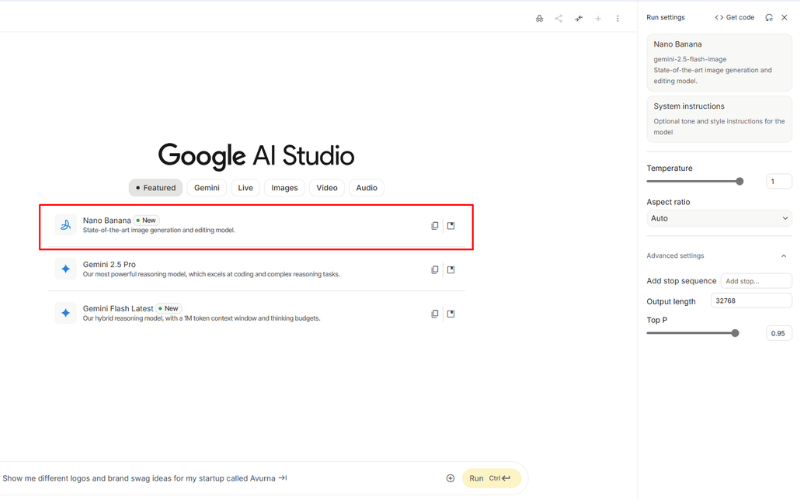 Truy cập vào google AI studio sau đó chọn model Nano Banana