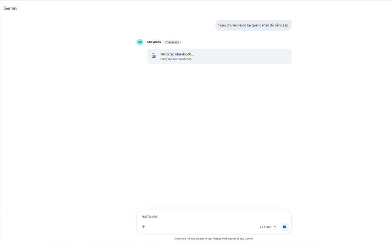 Gemini sẽ phân tích nội dung này và tự động tạo nên câu chuyện với nhân vật, bối cảnh, và hình minh họa tương ứng.
