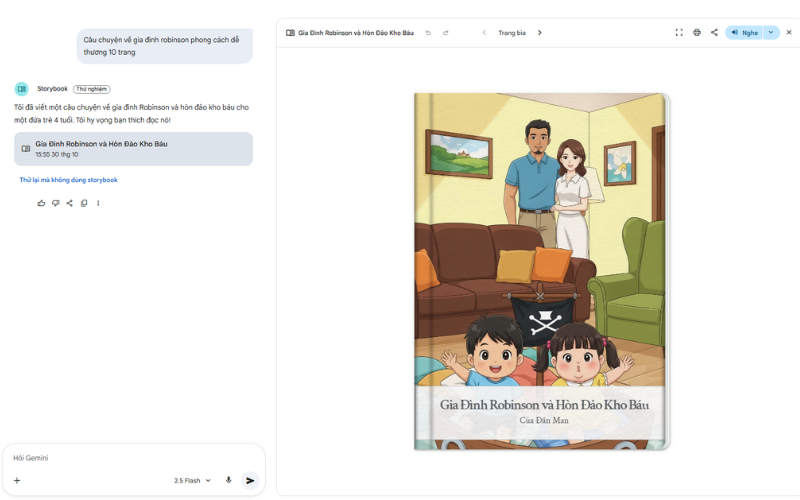 Trong khoảng 2–3 phút, Gemini sẽ tự động tạo ra một Storybook hoàn chỉnh bao gồm: