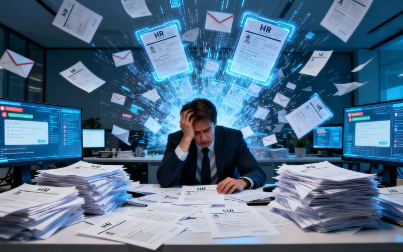 Mỗi tháng, phòng nhân sự của nhiều doanh nghiệp phải tiếp nhận từ hàng trăm đến hàng nghìn hồ sơ ứng tuyển. Ở các tập đoàn lớn, con số này thậm chí vượt mức 3.000-5.000 CV cho mỗi đợt tuyển dụng. Việc sàng lọc thủ công khiến HR mất trung bình 5-10 giờ mỗi ngày, nhưng số ứng viên thực sự phù hợp chỉ chiếm 10-20%.